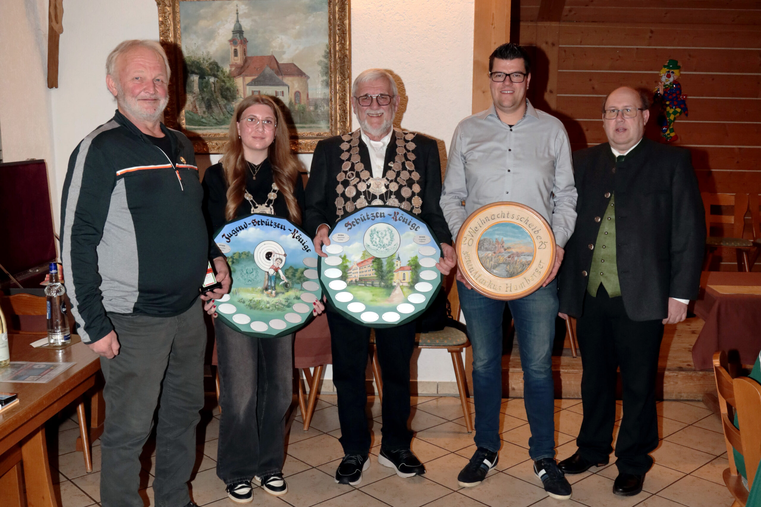 „Wiederholungstäter“ auf der Generalversammlung von Hubertus Sandizell. Frans Spies hat in Sandizell zum 7. mal die Schützenkönigswürde erreicht. Auch Laura Wegscheider hat nach dem Jahr 2024 auch für 2026 den Titel wieder erreichen können. Markus Hamberger sicherte sich die Weihnachtschreibe. Schützenmeister Wolfgang Gall konnte an Helmut Euba als Vizeschützenköning nur einen Trostpreis überreichen.